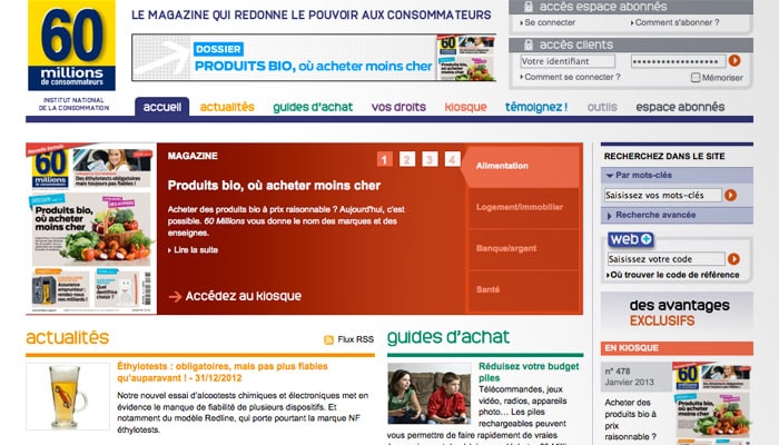 Le magazine consumériste 60 millions de consommateurs fait peau neuve pour 2013. Nouvelle présentation, plus de tests comparatifs, plus d’interaction avec les lecteurs, le mensuel compte ainsi augmenter ses ventes en kiosque de 20 à 25%.