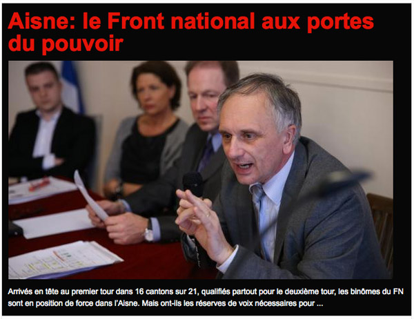 L’heure était donc suffisamment grave pour que Samir Heddar, rédacteur en chef du journal, se fende d’un édito vibrant pour exhorter les autres partis à s’unir contre la peste brune. Au diable la neutralité, aux orties l’objectivité, c’est carrément le grand méchant loup qui est aux portes de l’Aisne. Et notre journaliste devient stratège politique : “l’UMP, le PS, le PC et le Front de gauche n’ont qu’une seule question à se poser : faut-il laisser entre les mains du parti de Marine Le Pen l’action sociale, les collèges, les routes, les sports et l’économie ?”