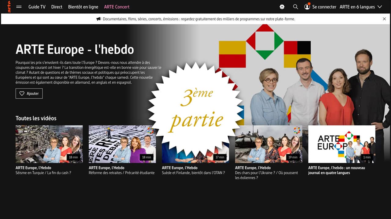 Voir aussi : « Arte Europe — l’hebdo » : la chaîne franco-allemande à l’assaut du continent. Première partie