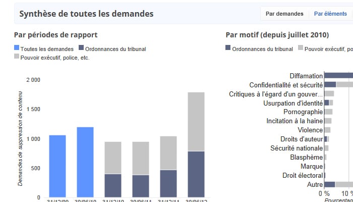 En ce qui concerne la France, 1546 demandes ont été reçues, au sujet de 1880 comptes. Une augmentation de 10% par rapport au deuxième semestre 2011 et de presque 83% par rapport à 2009. 45% de ces demandes d’informations ont obtenu une réponse favorable « intégralement ou en partie ».