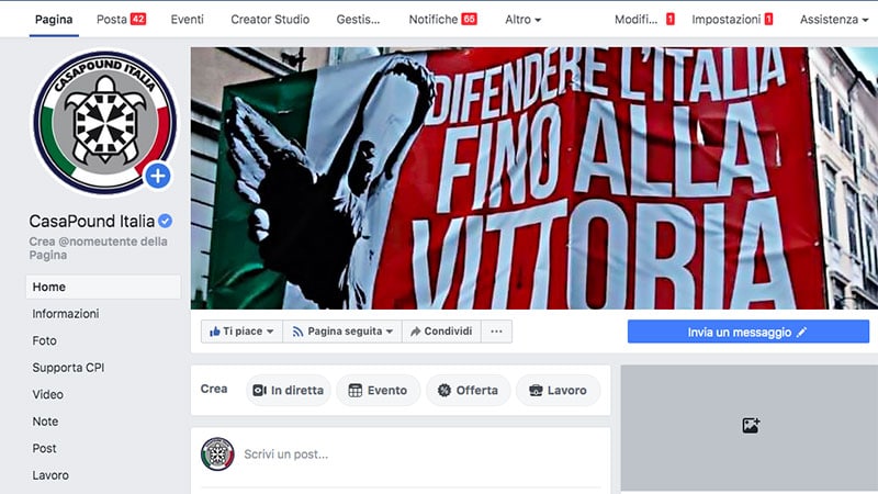 Le 9 septembre 2019, la page nationale de CasaPound, mouvement politique italien d’orientation nationaliste, était supprimée par Facebook. La juge Stefania Garrisi du Tribunal de Rome a condamné le 11 décembre 2019 Facebook à la rétablir de suite sous peine d’une amende de 800 € par jour de retard et l’a également condamné au paiement des frais de justice à hauteur de 15.000 €.