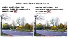 Libération, sous la plume de Sylvain Mouillard titre : « Insultes, vociférations… des habitants du XVIe déchaînés contre un centre pour SDF »… Sauf que dans l’article d’origine, la photo du centre est légendée ainsi : « Vue numérique du projet de centre pour migrants près du Bois de Boulogne à Paris ». Après que des internautes aient interpelé l’auteur de l’article sur twitter quant à l’esprit « manipulatoire » de son titre (cf photo jointe ), la légende de la photo a très vite été modifiée en : « Vue numérique du projet de centre d’hébergement d’urgence près du Bois de Boulogne à Paris »…