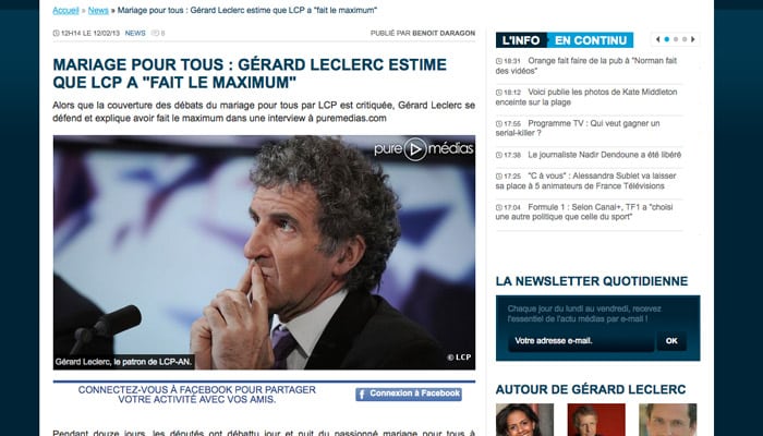 La Chaîne parlementaire a été la cible de différentes critiques à propos de sa couverture des débats sur le « mariage pour tous ». Gérard Leclerc, son patron, a défendu, très agacé, son dispositif et les efforts qui ont été faits.