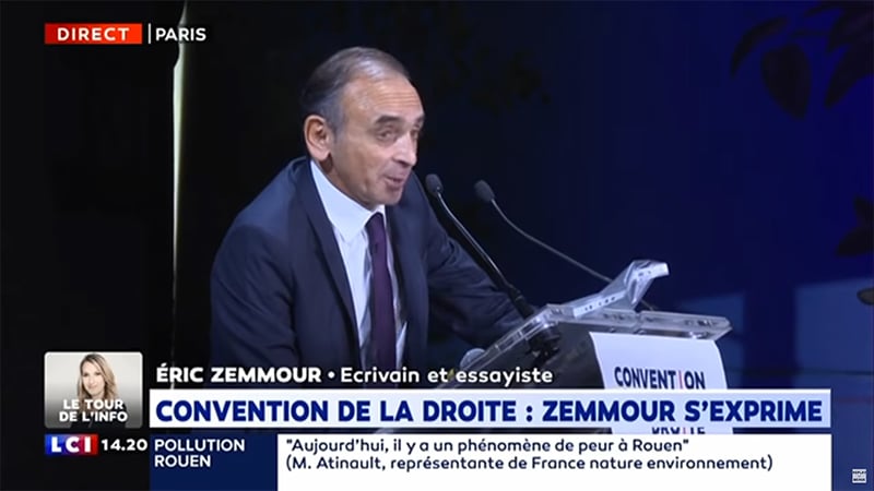 Lors de la “Convention de la droite” du samedi 28 septembre 2019, Eric Zemmour (son portrait) a tenu un long discours introductif, à charge contre l’idéologie dominante, et diffusé en direct sur LCI, ce qui a évidemment déplu à certains censeurs, amateurs ou professionnels.