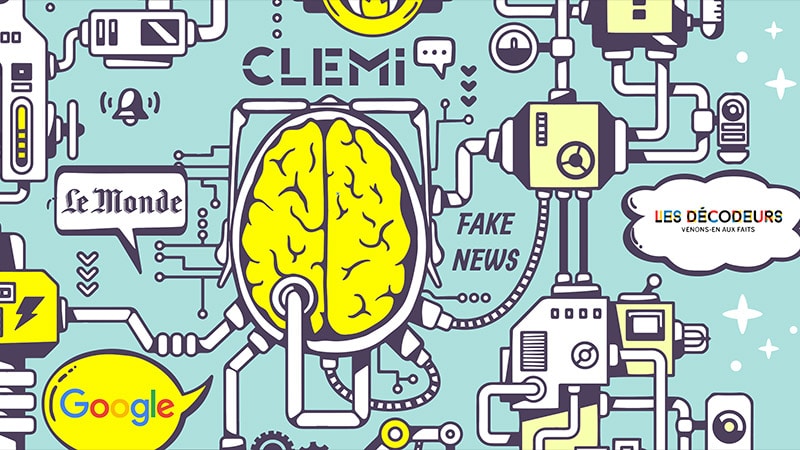Toujours dans le registre bouffon, l’auteur recrute des aides précieuses : « Un groupe de journalistes volontaires du Monde, en complément de l’initiative “Decodex”, effectue ainsi régulièrement des interventions en classe, sur la base de contenus pédagogiques mis à disposition de nos lecteurs. ». Ouh ! Le Decodex financé par Google au service de la démocratie ! Le Monde qui véhicule – comme tout le monde – de fausses nouvelles appelé à la rescousse. Cerise sur le gâteau (ranci), les écoles de journalisme – pour beaucoup des usines à décérébrer (certains résistent) sont appelées à intervenir. Il faut que les médias dominants soient bien inquiets pour appeler à leur secours des formules aussi éculées.