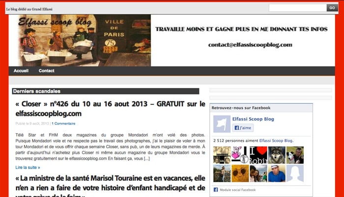 Accusant Télé Star, FHM et Voici, trois magazines des groupes de presse Prisma Media et Mondadori France, de lui avoir volé des photos, Jean-Clause Elfassi offre chaque semaine aux lecteurs de son blog de consulter les magazines (« de merde ») Voici et Closer, sans la pub et… gratuitement.