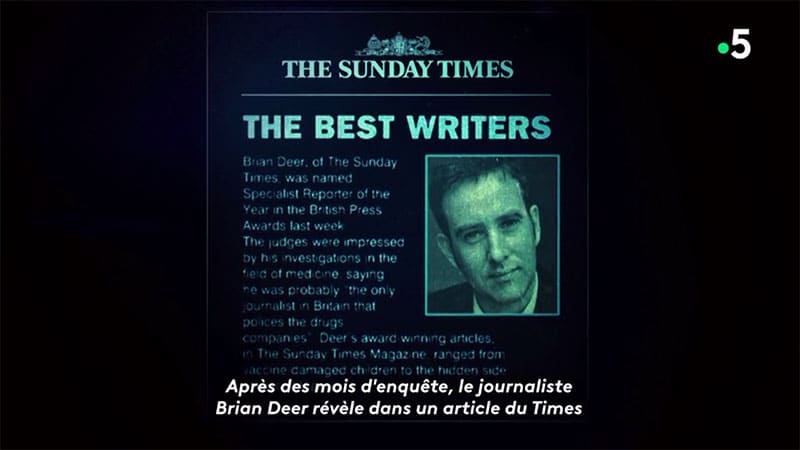 - Le documentaire part d’un article du Monde, dont le sérieux n’est pas douteux, paru le 20 décembre 2017, qui classait « les dix principales fake news » diffusées sur Facebook, parmi elle « une vieille rumeur selon laquelle il y aurait un lien entre vaccination et autisme ». Le documentaire revient aux origines supposées de la rumeur, fin 1990 : « l’histoire de l’une des plus grosses escroqueries scientifiques de l’histoire de la médecine » qui concerne à la fois l’autisme et la rougeole, le vaccin contre cette dernière maladie, entre autres, le vaccin ROR, ayant été considéré comme cause de l’autisme. Notons que cette fake news a été publiée la première fois dans le prestigieux journal médical, The Lancet, autrement dit : c’est en premier lieu le monde officiel de l’information qui produit la source de cette infox.