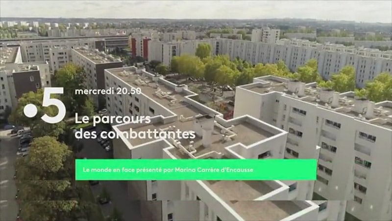 Le documentaire s’intitule « Le parcours des combattantes » et a été diffusé sur France 5, dans l’émission Le Monde en Face présentée par Marina Carrère d’Encausse depuis 2014. Chaque mercredi, cette émission propose un documentaire suivi d’un débat. L’émission du mercredi 14 mars 2018 était présentée ainsi :