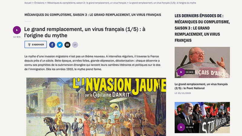 Episode 1 de la saison 3 : « Le grand remplacement, un virus français », faits remarquables