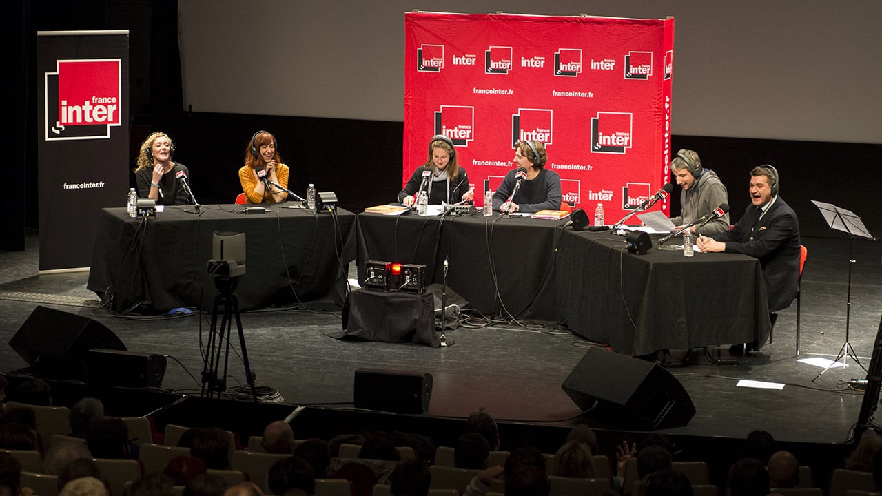 Photo : Émission “Si tu écoutes, j’annule tout” de France Inter enregistrée en direct de l’espace Franquin, Festival International de la Bande Dessinée d’Angoulême, le 27 janvier 2017. Auteur : Selbymay. Source : Wikimédia