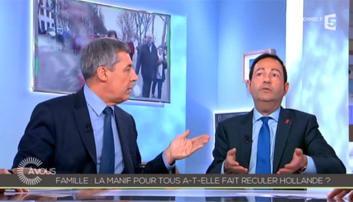 Celui-ci, lui-même homo­sex­uel, a reproché à l’ancienne plume de Nico­las Sarkozy d’incarner « l’excès ». Et de déclar­er : « Vous ne me respectez pas puisque vous voulez m’empêcher de me mari­er. » Évo­quant son expéri­ence per­son­nelle, Guaino a ten­té de met­tre en évi­dence que la fil­i­a­tion était impor­tante – ce dernier, qui n’a pas con­nu son père, a été adop­té à l’âge de 10 ans par le mari de sa mère.