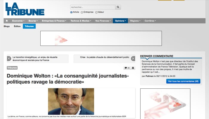 Dominique Wolton passe au lance-flammes les relations « incestueuses » entre journalistes – souvent femmes – et politiques – plutôt hommes. Développement : La Tribune.fr