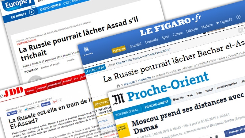 Les médias français de tous bords ont annoncé la fin du soutien russe au pouvoir syrien. Jusqu’au moment où la Russie s’est mise à envoyer des avions et des chars pour lutter contre Daech aux côtés de Bachar el Assad, leur apportant un démenti cinglant… Petit florilège réalisé par le journaliste Alexandre Latsa, spécialiste de la Russie, à lire sur alexandrelatsa.ru