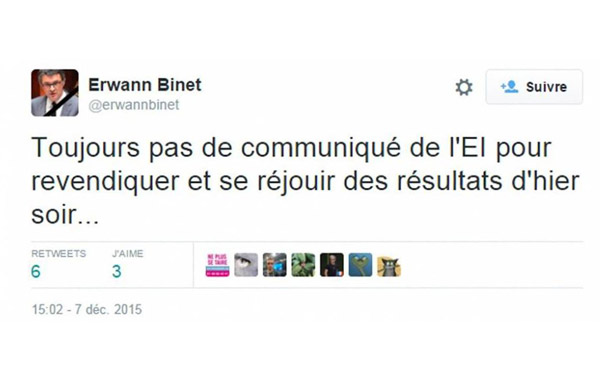 « Toujours pas de communiqué de l’EI pour revendiquer et se réjouir des résultats d’hier soir… »