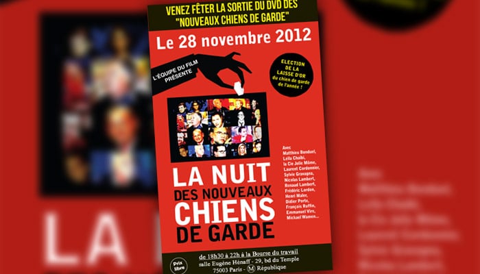 La nuit des nouveaux chiens de garde, 28 novembre 2012, de 18h à 22h à la Bourse du Travail, salle Eugène Hénaff, 29 bld du Temple, 75003 Paris. Plus d’information sur www.lesnouveauxchiensdegarde.com