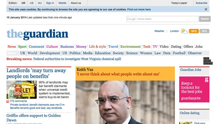 site du Guardian a été rétabli le 9 janvier.