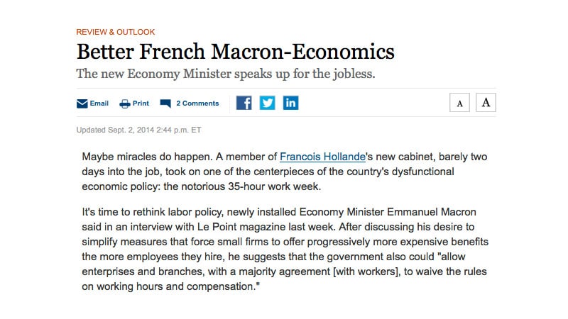 Le @WSJ se réjouit de l’arrivée de Emmanuel Macron http://t.co/jUTeuRjdut via @ojim_france pic.twitter.com/nDTSg2icbS