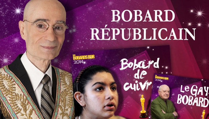Vous pouvez vous inscrire par courriel à contact@bobards-dor.fr pour participer à la cérémonie 2014. Vous pouvez également d’ores et déjà voter pour vos candidats favoris dans chaque catégorie. Yann Barthès, David Pujadas, Bruno-Roger Petit et autre Pierre Bergé seront à l’honneur. La cérémonie sera diffusée en direct sur internet, sur des sites tels que Novopress, Fdesouche, Agence2presse, Nouvelles de France/Délits d’images, le Rouge et le Noir et TVLibertés.