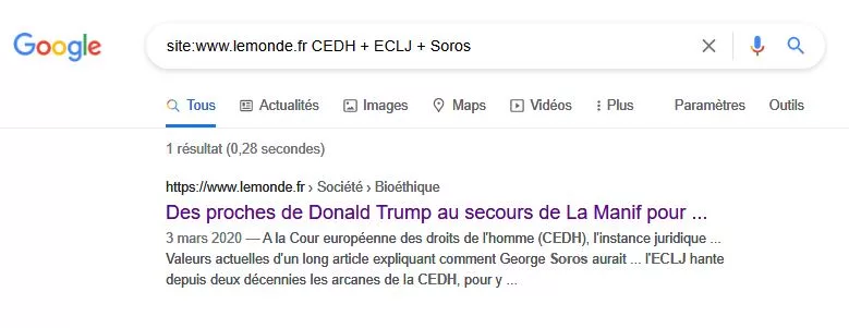 À titre de comparaison, la même recherche effectuée sur le site de Valeurs Actuelles le 11 mai 2021 renvoie 29 résultats, soit 29 articles différents s’étendant sur les liens entre une partie des juges de la CEDH et la nébuleuse Soros. Mais maintenant que nous avons fait le tour du sujet dans La Croix, jetons donc un œil au quotidien de référence du centre-droit, Le Figaro.