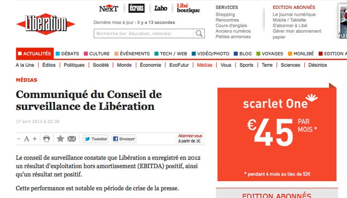 Le conseil de surveillance de Libération, qui a eu lieu ce mercredi 17 avril 2013, a décidé d’une nouvelle organisation du quotidien.
