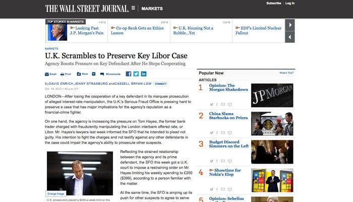 Après la publication des noms de deux douzaines de traders ayant participé à la fraude du Libor – taux de référence des marchés interbancaires –, le Wall Street Journal a été sommé par le Serious Fraud Office (SFO), office britannique de lutte contre la délinquance financière, de retirer son papier.