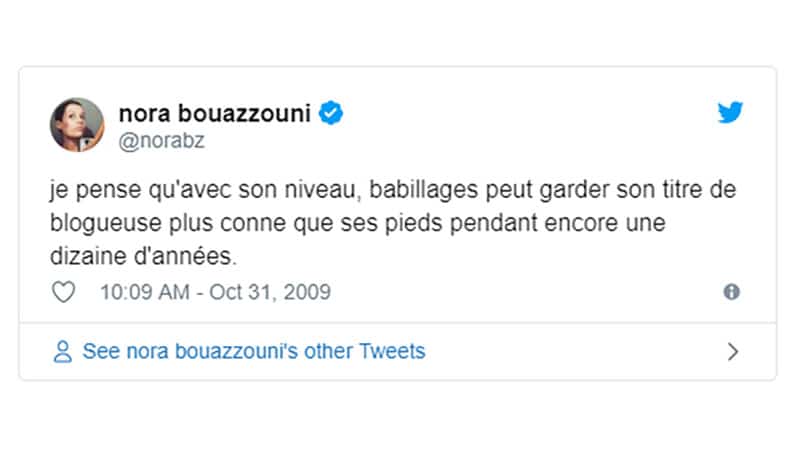 Le harcèlement subi par la jeune femme est incontestable : il est visible, par exemple en recherchant les tweets mentionnant “babillages”, le nom de son blog ou “xoxobcapucine”, le nom de son ancien compte en 2009.
