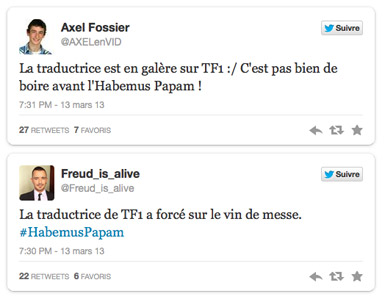 La chaîne TF1 a été contrainte, dans un communiqué, de s’excuser pour la traduction plus qu’approximative des prières du Notre Père, du Je vous salue Marie et du Gloria, au moment de l’apparition du nouveau pape François, le 13 mars dernier : « les prières “Notre Père” et “Je vous salue Marie” n’ont pas été correctement retranscrites en français. Nous en sommes profondément désolés ».