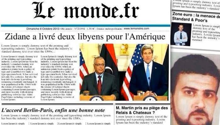 Le fake de la Une du Monde qui traine sur les réseaux sociaux libyens http://t.co/1nKYs27qou Marrant. cc @lemondefr