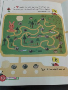 On y trouve des histoires fictives mettant en scène des combattants, des puzzles de guérilleros barbus et de monuments sacrés comme la mosquée Al-Aqsa à Jérusalem, des coloriages d’armes et de grenades, ou encore des petits jeux de labyrinthe pour apprendre aux enfants à éviter les mines.