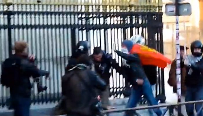 Après avoir « reçu deux claques », le journaliste a été attaqué rue Robert-Esnault-Pelterie suite à la dispersion des manifestants. « Ils couraient, remontaient la rue quand l’un d’eux m’a sauté dessus », poursuit-il.