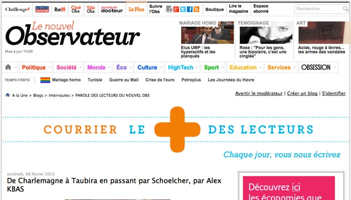 « Beaucoup de courriels émanent d’abonnés » ou de « lecteurs réguliers » qui ont « parfois » voté pour François Hollande et qui disent se sentir « méprisés » suite aux difficultés rencontrées par les organisateurs de la Manif pour Tous pour être reçus par le Président de la République, ajoute Le Nouvel Obs. L’hebdomadaire affirme les avoir publié sur le blog Parole des lecteurs du Nouvel Obs.