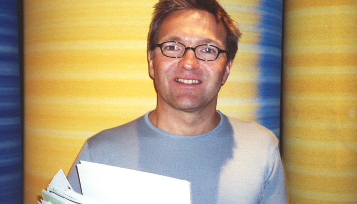 Photo : Laurent Ruquier dans les studios de Europe 1 en septembre 2000. Crédit Jérôme Bon (Wikimédia)