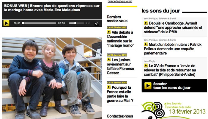 France Info junior, ce sont des enfants qui chaque samedi sur France Info, posent des questions à un journaliste de la rédaction sur un sujet d’actualité. Le 2 février, des lecteurs de Mon quotidien, le quotidien des 10–13 ans posaient ainsi des questions à Marie-Ève Malouines, chef du service politique de France Info, relatives au projet de loi sur le mariage homosexuel débattu à l’Assemblée nationale. Une réponse de Malouines à la question de Rayane, 8 ans, a interpellé un lecteur de l’Ojim qui nous a signalé la séquence.
