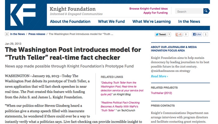 Ce « détecteur de mensonge » en direct n’est pas encore opérationnel mais devrait l’être, espère-t-on dans l’équipe portant ce projet, pour les présidentielles en 2016. Interrogée par Libération, Cory Haik, la responsable du projet, considère que cet outil doit devenir un plus essentiel à la profession.