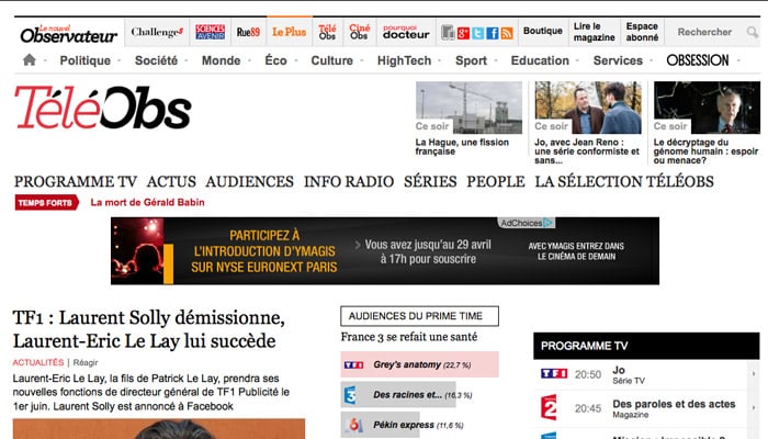 Selon Presse News et Stratégies, Le Nouvel Observateur va abandonner son supplément, Télé Obs.