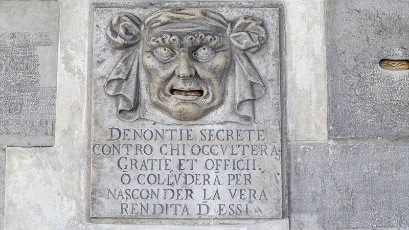 Photo : “Bocca di leone”, ou “bouche de dénonciation” à Venise. Crédit : Patricia Hofmeester / Shutterstock.com