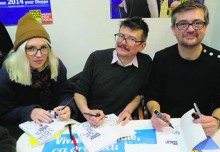 - Février 2014 : Sarah Constantin, accompagnée de Luz et Charb, soutient le maire communiste Sébastien Jumel.