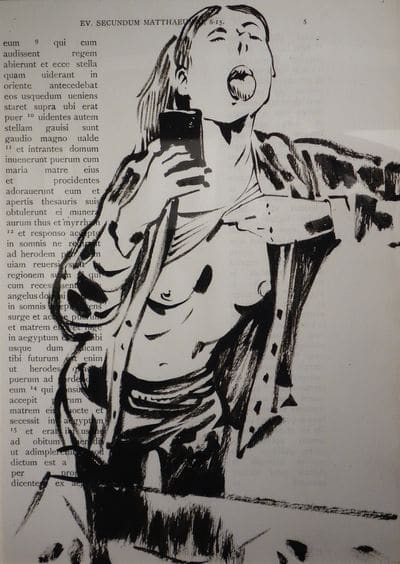 Sarah Constantin s’associe avec l’ex-dessinateur de Charlie Hebdo, Luz. Ensemble, ils montent une exposition de dessins pornographiques réalisés sur des Bibles écrites en latin. Cette exposition portera le nom de « Kinkiness » (« pratiques sexuelles déviantes » en anglais) et se déroulera au Musée de l’érotisme à Paris. À travers cette exposition les deux amis veulent casser « les barrières entre artiste et modèle, érotisme et pornographie, fantasme et quotidienneté, modernité et classicisme ». À cette occasion une cinquantaine de croquis inspirés du corps de Sarah Constantin seront réalisés par Luz et exposés. Luz confiera que lorsque Sarah Constantin ne pouvait poser devant lui, elle lui envoyait des « sextos » avec photos érotiques pour l’aider. Les Bibles utilisées pour l’exposition sont des Bibles de travail pour séminaristes, avec de larges marges sur les côtés pour permettent d’y laisser des notes, ou dans le cas présent des dessins de Sarah Constantin nue.