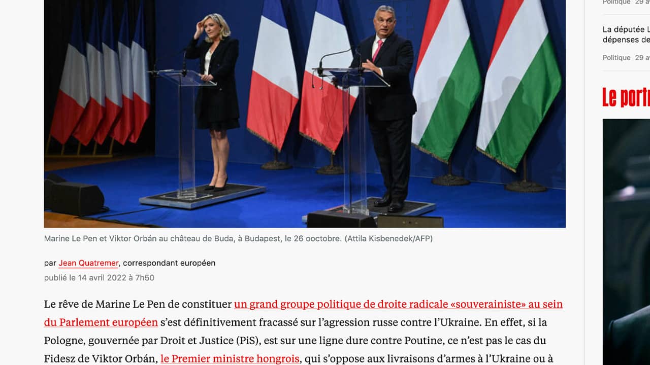 Nous nous référons à l’article de Jean Quatremer dans Libération le 14 avril 2002 « Présidentielle : Viktor Orbán, le grand inspirateur de Marine Le Pen ». Nous ne nous attarderons pas sur la proximité entre les deux personnages mais à l’analyse de l’article concernant la Hongrie. Si Saint-Pierre a renié le Christ par trois fois, Jean Quatremer fait mieux en mentant par quatre fois. Nous ne sondons ni les reins ni les cœurs, nous ne nous prononcerons pas si c’est par manque d’information ou par malveillance, les deux n’étant pas incompatibles.