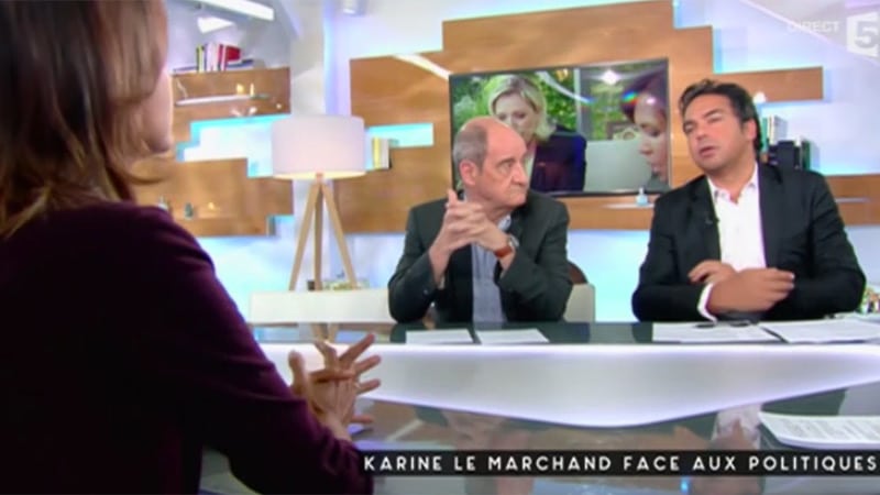 Devant les gri­maces de son inter­locu­teur, l’an­i­ma­trice a lancé : « Est-ce que j’in­vente des faits ? » Mais pour seule réponse, Cohen accuse alors Karine Le Marc­hand d’avoir tout sim­ple­ment « copiné » avec la prési­dente du FN. En somme : d’avoir pactisé avec le dia­ble… Et d’a­jouter que « les téléspec­ta­teurs jugeront. »