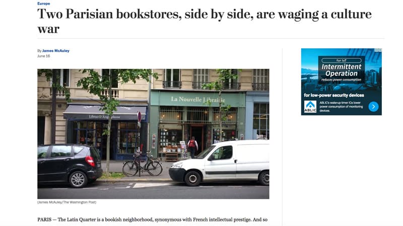La Nouvelle Librairie, située à l’emblématique 11 rue de Médicis dans le Quartier latin et dont nous avions déjà raconté les péripéties, est maintenant la cible d’un récent article de James McAuley pour le Washington Post, propriété de Jeff Bezos, le grand patron d’Amazon, première fortune américaine, environ 160 milliards de dollars avant son divorce en cours.
