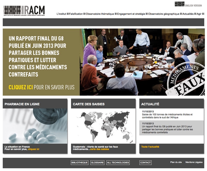 Une information qui affole la presse ces jours-ci : la contrefaçon de médicaments devient très inquiétante, selon les conclusions d’un rapport de l’IRACM (Institute for Research against Counterfeit Medicine (Institut de Recherche contre les médicaments contrefaits) paru le 25 septembre dernier.