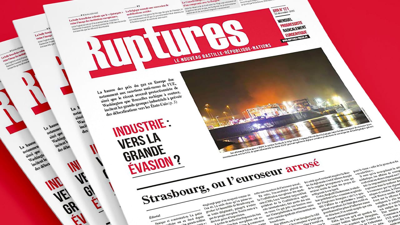 L’origine de Ruptures est à trouver dans le mensuel “progressiste radicalement eurocritique” Bastille-République-Nation. Lancé en 2000, ce journal proposait — déjà — des analyses approfondies sur l’actualité tant de l’Union européenne que des pays qui la composent. En 2015, le titre a changé de nom pour prendre celui de Ruptures, censé drainer un lectorat plus large. Ruptures est avant tout un média en format papier, disponible sur abonnement, le site internet du journal n’étant qu’une vitrine avec peu de contenu.