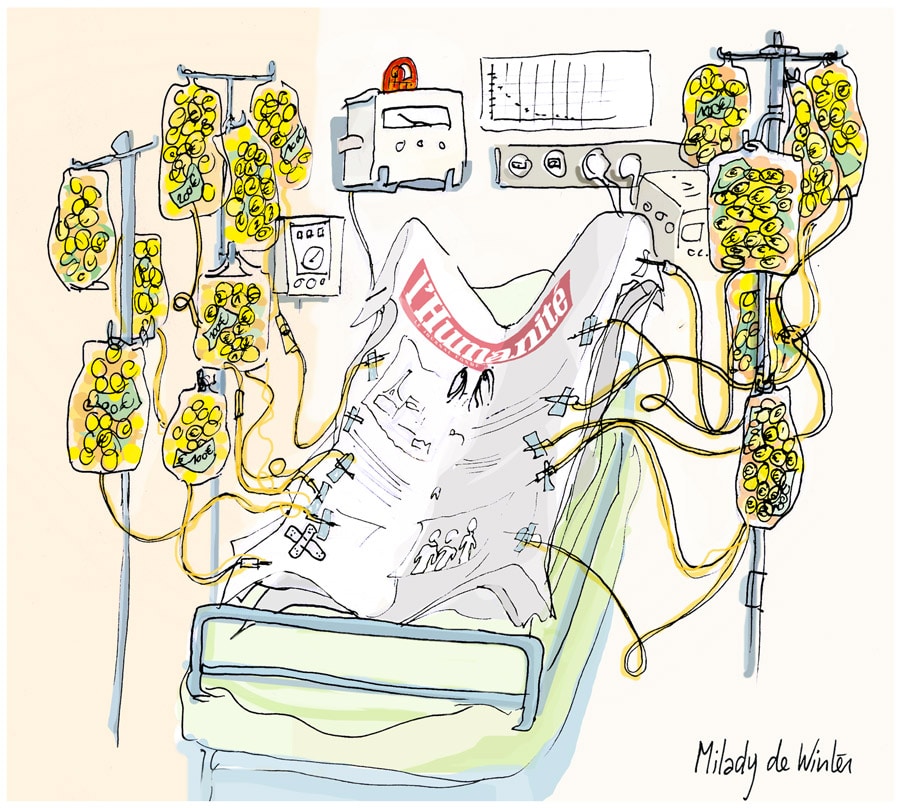 Le quotidien communiste L’Humanité a lancé le 23 novembre un énième appel aux dons auprès de ses lecteurs. Objectif de la souscription: récolter un million d’euros. Il devrait être atteint au vu du résultat du précédent cru 2010–2011, qui avait ramené 1,2 million d’euros dans les caisses de L’Huma. En chute de diffusion de 18% depuis 2010 (DSH OJD 2013–2014 : 39 239 exemplaires), le journal sera en perte de près de trois millions d’euros cette année. L’Humanité n’est pas le seul titre à jouer sur la fibre sensible de ses lecteurs en faveur de la presse indépendante. C’est le credo des autres titres, en général de gauche ou assimilés, qui tendent aussi la sébile. Ainsi les hebdomadaires et mensuels satiriques Charlie hebdo et Sine hebdo ont lancé un appel début novembre. De façon plus modeste que pour L’Huma, il aurait permis à Charlie de récupérer 40 000 euros en une quinzaine de jours. Le mensuel anti libéral Alternatives économiques n’est pas en reste. Lui aussi a demandé à ses lecteurs de l’aide fin novembre pour fiancer notamment ses développements numériques. Les bons résultats en général engrangés sur ce canal ne sont pas uniquement dus au militantisme. Les dons sont défiscalisés (66% du montant) dans le cadre de l’association Presse & pluralisme qui collecte pour le compte des éditeurs. Ironie de la situation pour ces journaux marqués à gauche, ce dispositif a été mis en place en 2007 à la suite des Etats généraux de la presse, initié par Nicolas Sarkozy.