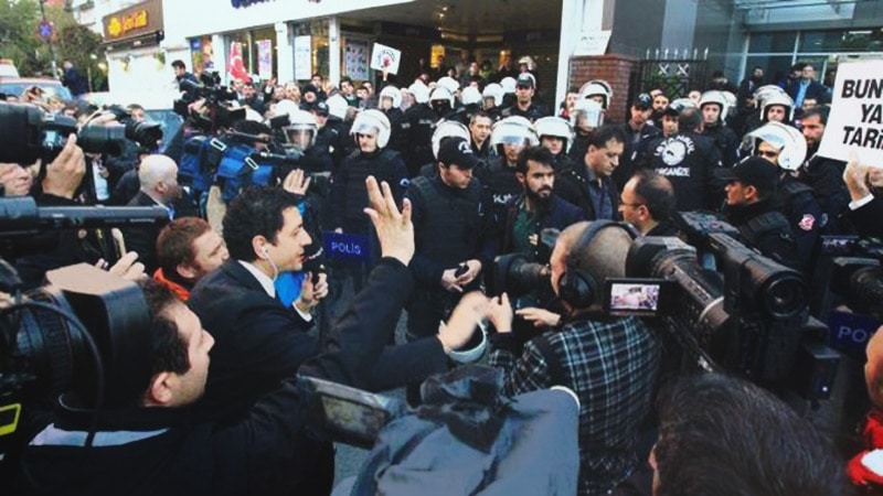 « Tous ceux qui sont responsables de cette décision devront répondre de leurs crimes devant l’histoire », a déclaré un député de l’opposition, Baris Yarkadas, présent sur place. « Le pouvoir a montré aujourd’hui ce qu’il adviendra de ce pays si on ne met pas un terme à cette oppression dimanche », a pour sa part commenté Eren Erdem, un autre parlementaire d’opposition.