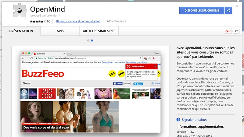 On ne le présente plus : le Décodex, un outil lancé par Le Monde afin de « labelliser » les sites d’informations pour traquer les « fausses nouvelles ». Evidemment, la levée de bouclier ne s’est pas faite attendre, et de toute part : des médias mainstream s’estimant jugés par un confrère aux sites de réinformation, injustement diabolisés. Depuis peu, en réaction à ce phénomène, un nouveau venu a fait son apparition dans le catalogue des extensions de Google Chrome : OpenMind.