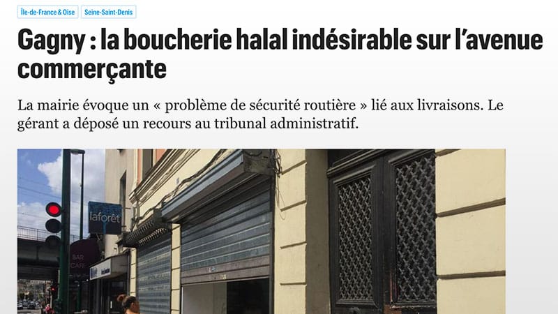 Dans son édition du 22 août 2019, Le Parisien se fait l’écho d’un conflit opposant un commerçant ayant « une certaine notoriété » et la mairie de Gagny, en Seine-Saint-Denis. Le titre : « Gagny : la boucherie halal indésirable sur l’avenue commerçante ». En soi, c’est déjà une prise de position, le quotidien pouvant très bien proposer un autre titre, comme par exemple : « Une boucherie halal sur l’avenue principale de Gagny pourquoi faire ? ». D’évidence, le fait de manger « halal » n’entrant pas dans les habitudes des Français et des Européens, Le Parisien pouvait interroger le pourquoi d’une telle boucherie, au moins, mais aussi en indiquer le caractère à priori exotique sur le territoire français. Ce n’est pas le cas, le ton de l’article étant globalement favorable à la boucherie halal concernée.