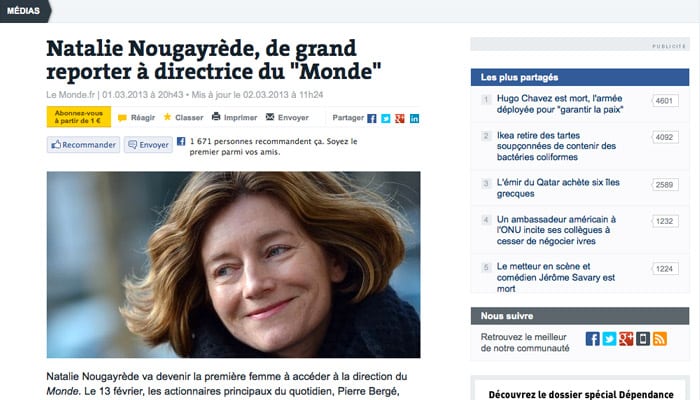 L’OJIM lui consacrera très certainement un prochain portrait. Mais, d’ores et déjà, on peut découvrir la biographie officielle de la nouvelle patronne du Monde.