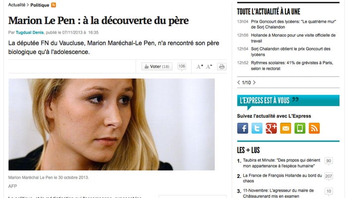 Concernant Tugdual Denis, le journaliste de L’Express dont l’article « Marion: à la découverte du père » a buzzé, Minute écrit : « Dans la famille catholique traditionaliste bretonne des Denis, il est le rebelle – ou le vilain petit canard, au choix. Sur sept enfants, il fallait bien qu’il y en ait un qui tourne mal et ce fut Tugdual: il a choisi d’être journaliste à L’Express. Du coup, on l’a moins vu que son père et que ses frères chez les scouts. On le voit moins que son père au pèlerinage de Chartres (dommage : en mai dernier, il aurait pu y faire la bise, et à papa, et à Marion) ». Le journaliste s’interroge : « Histoire de mettre de l’ambiance dans la rédaction : il a dit à ses collègues que l’un de ses frères est prêtre à l’Institut du Christ Roi et qu’un autre, passé par le GUD, le syndicat étudiant nationaliste qui fait figure de grand méchant loup, est un grand ‘spécialiste’