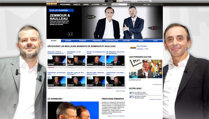 Après leur éviction d’ « On n’est pas couché » sur France 2, Éric Zemmour et Éric Naulleau ont fait perdurer leur binôme sur Paris Première dans « Zemmour & Naulleau ».